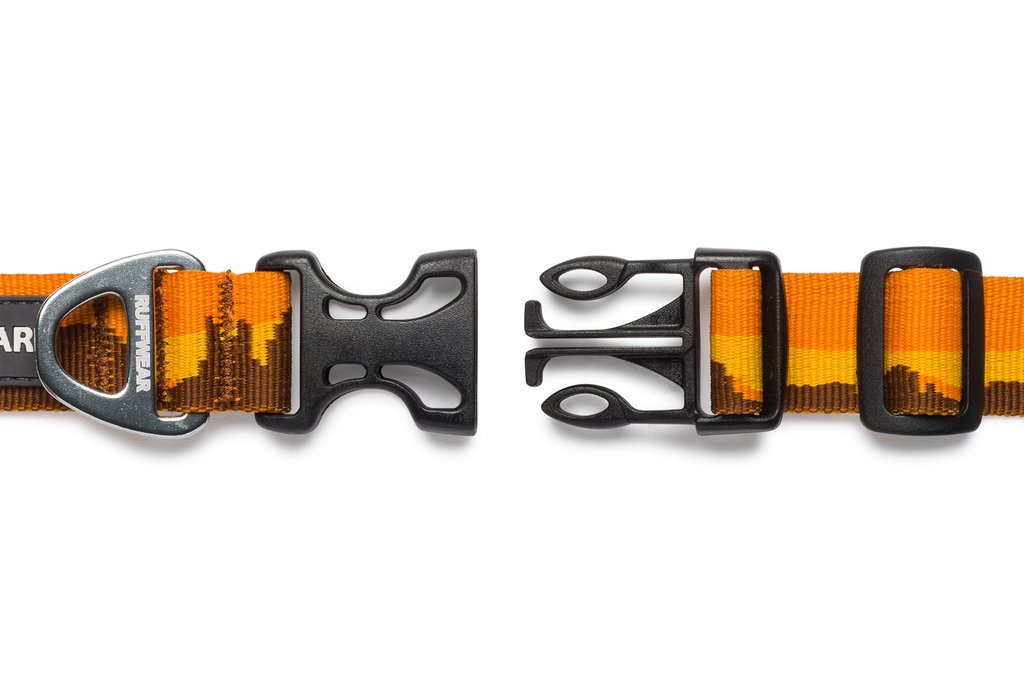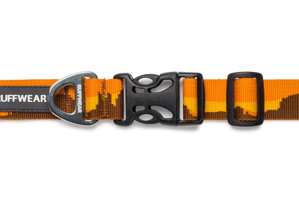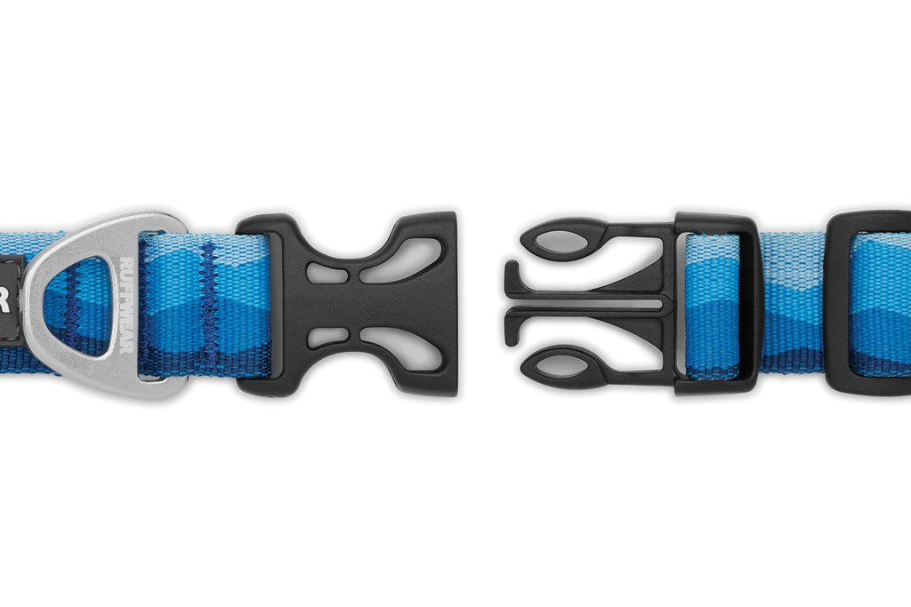 The Ruffwear Hoopie™ Collar is our everyday dog collar with an easy-to-use side-release buckle. Outdoor-inspired patterns connect you with your favorite wild spaces. Packed full of Ruffwear's essential collar features: separate ID tag attachment point with tag silencer, strong and comfortable webbing, and aluminum V-ring.